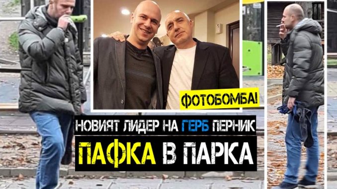 Денислав Захариев, който пое отговорността да върне сили на ГЕРБ Перник ПАФКА цигара след цигара в парка на Перник. Вади от кутията в джоба едната цигара, пуши и лапа другата. И често гледаше в една точка.
