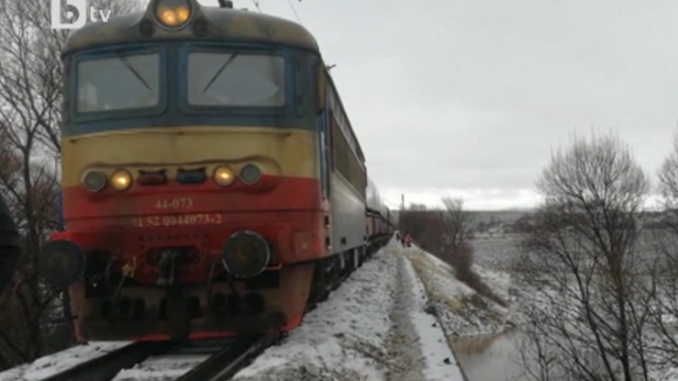 Един от вагоните е дерайлирал, а четвъртият и петият са се наклонили над насипа, заради проливния дъжд.