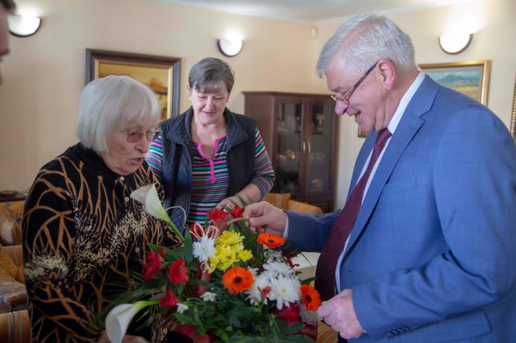 Домакинята, която е пяла 70 години на сцената получи от Кирил Ананиев голям букет с цветя. Тя пък почерпи гостите си със сладки, бонбони и баница.
