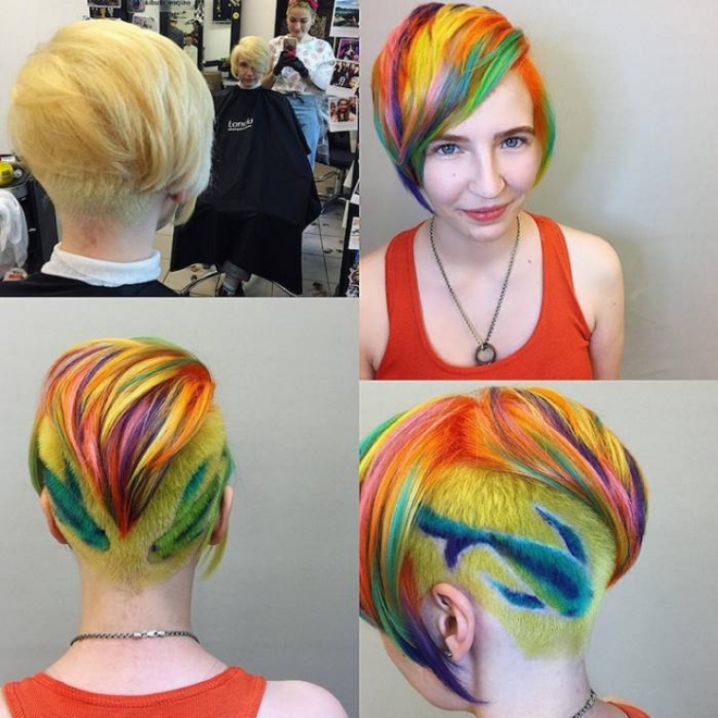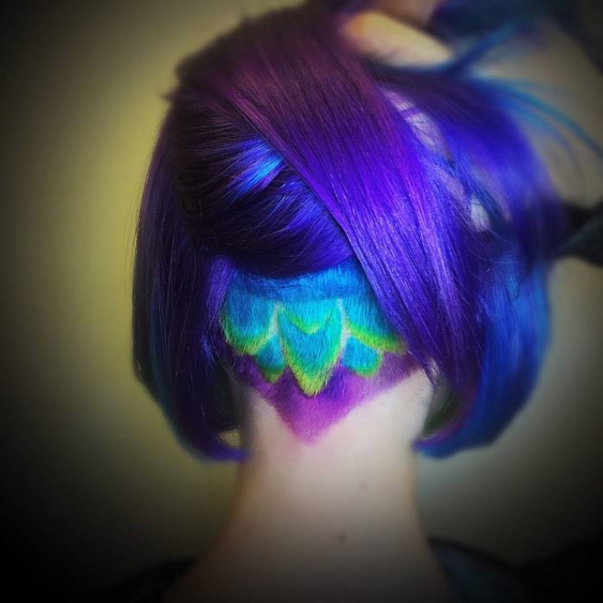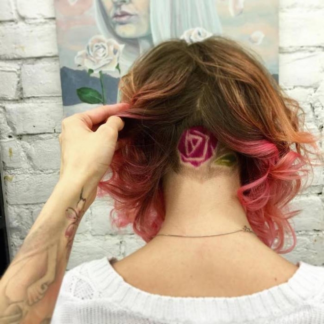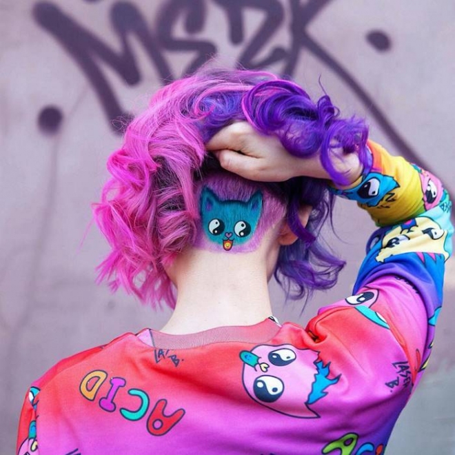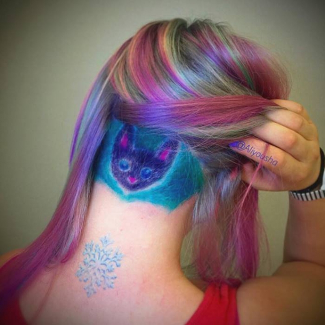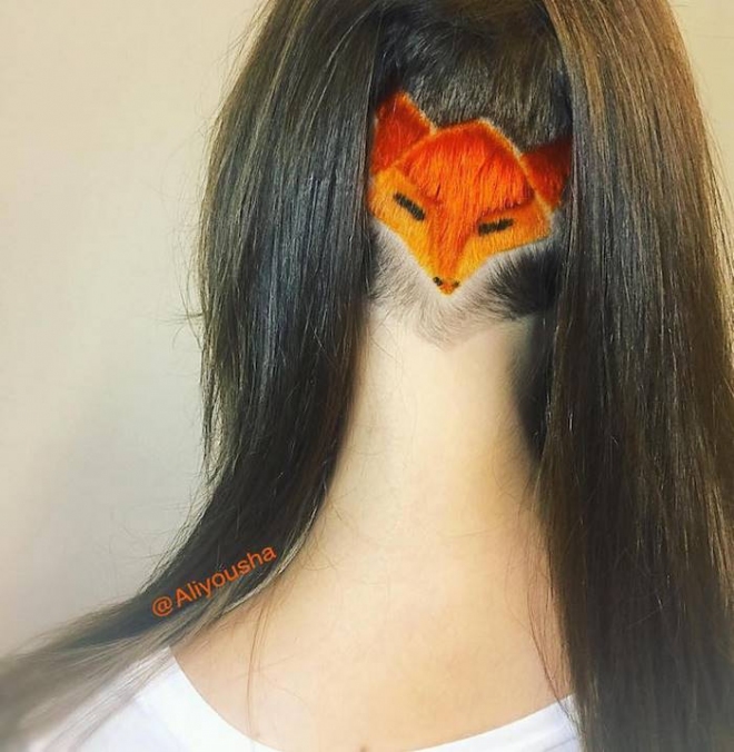 Художничката Алия Аксарова, която казва, че косата на човек е като бяло платно за рисуване за нея има цял каталог с картинки. Сред най-попуярните са китове, котета, лисици, извънземни и др.