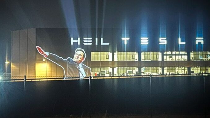 На 23 януари политически активисти излъчиха изображение на Мъск, който прави нацисткия поздрав заедно с думата „Heil“ върху гигафабриката на Tesla в Берлин.