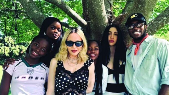 В Instagram тя показа кадри от вечеря с пет от шестте си деца – Лурдес, Дейвид, Мърси Джеймс и близначките Стела и Естер. Певицата сияеше в златиста винтидж рокля, масата бе украсена като за кралска коронация, а децата – като наследници на поп империя. Но един въпрос виси над златния декор: