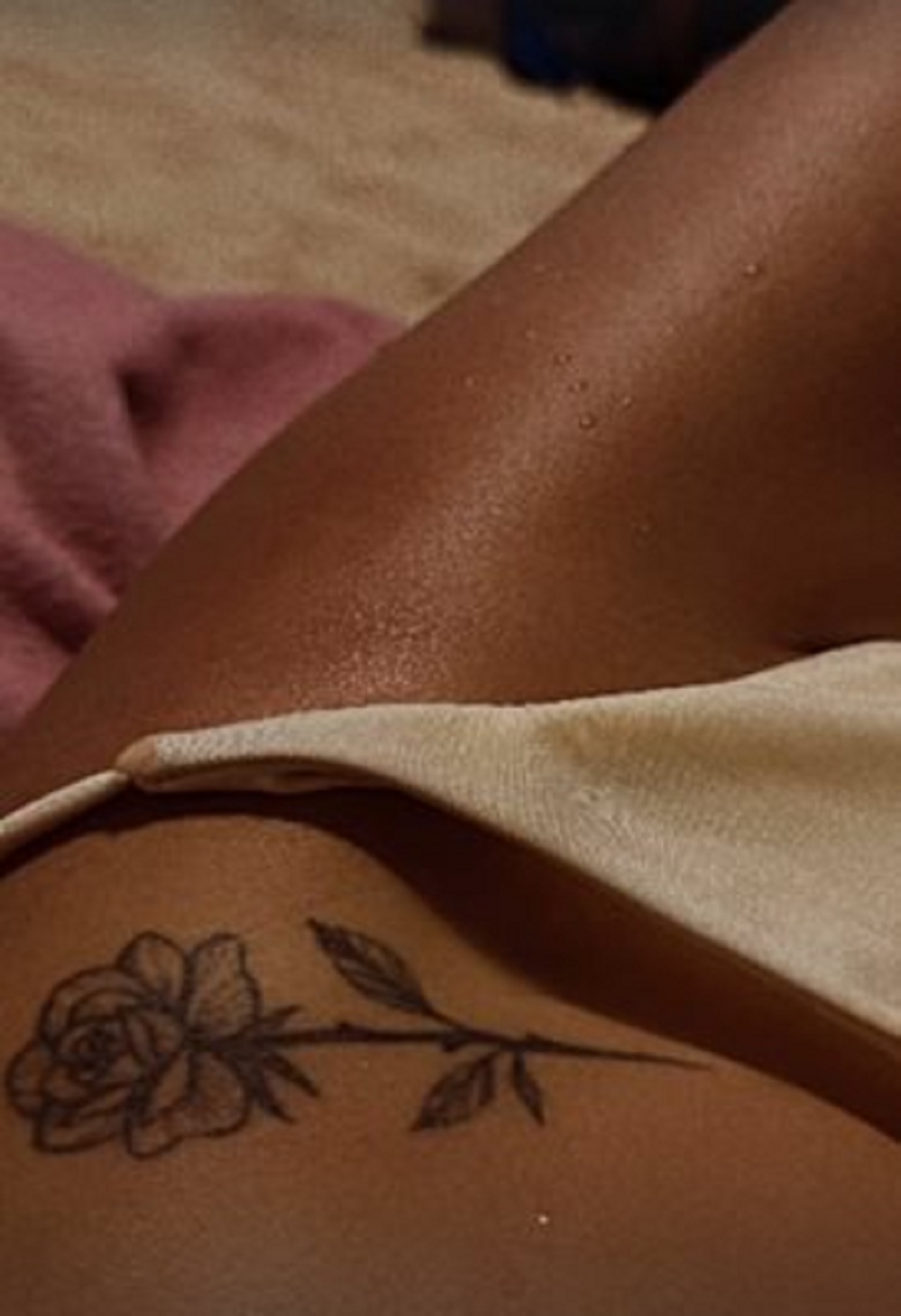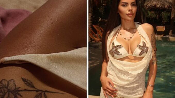 Певицата започна с провокативно фото – само част от тялото, малко бански, малко кожа и… татуираната ѝ розичка над него. После взриви мрежата с цяла фотосесия край басейн, където върху банския носи ефирна дрешка – прозрачно извинение, което изобщо не прикрива пищния ѝ бюст.
