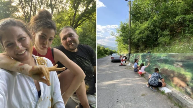 Продължава изрисуването на бетонната подпора край град Земен от Млади творци и малките ръце на децата от града.