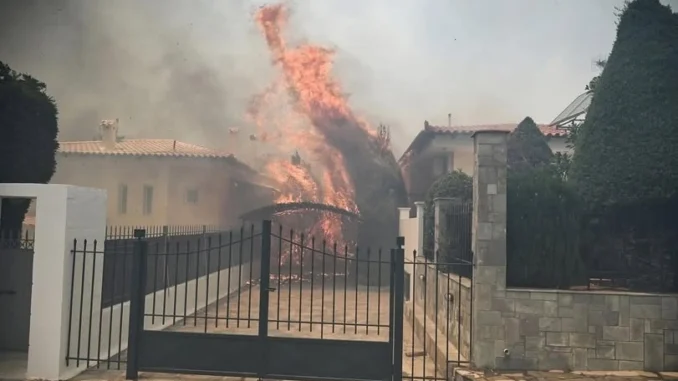 Голям горски пожар избухна в района на Палеа Фокея, в източната част на Атика, Гърция, и вече поглъща къщи и цели квартали. Огнената стихия пламна в ранния следобед и за часове премина от горската зона към жилищните райони, налагайки спешна евакуация.