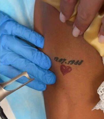В стори в Инстаграм тя показа как лазер изтрива рождената му дата (12.07.1988) – изобразена под форма на сърце – както и друга татос, съдържаща буквата „Х“