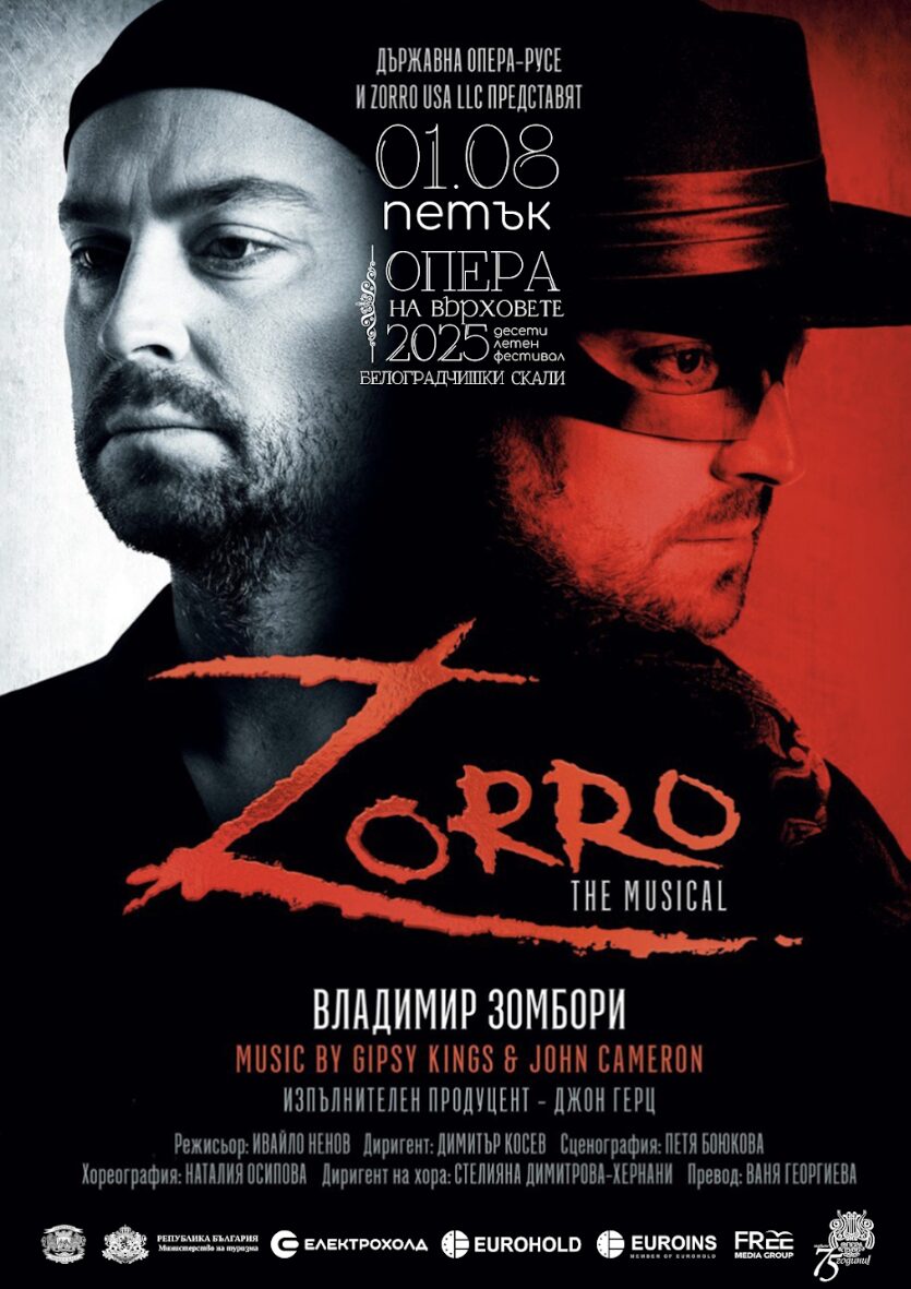 Държавна опера-Русе ще открие фестивала с мюзикъла „Зоро“ на 1 август, с незабравимата музика на Gipsy Kings и Джон Камерън, с диригент маестро Димитър Косев. В ролята на харизматичния легендарен герой влиза Владимир Зомбори, за когото това е дебют в този жанр.