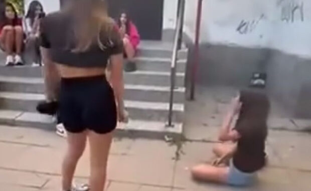 Скандален клип с насилие над момиче се разпространява в социалните мрежи. На кадрите група ученички удрят и скубят своя съученичка, принуждавайки я да коленичи и дори да целува обувките на едно от тях.