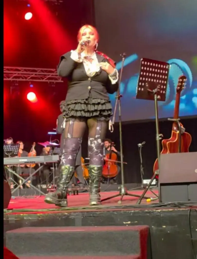 Певицата се появи с черна минипола с къдрици, по-къса от джобовете на якето ѝ – гледка, която предизвика повече шок, отколкото аплодисменти. На сцената стоеше не рок дива, а неловка комбинация между пънкарка от 90-те и отчаяна тийнейджърка от TikTok. Тясното сако, кубинките и гримът в стил „втора младост“ само подчертаха колко зле остарява бунтът, когато не знае кога да спре.