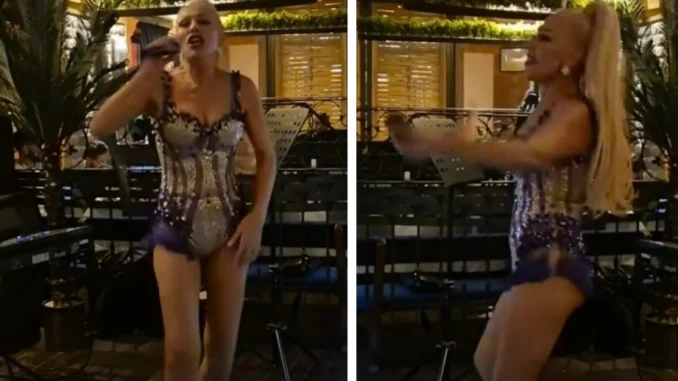 По време на участието си певицата не просто пя. Тя подскачаше, качваше се по пейки, столове, ръкомахаше, викаше, разпалваше публиката като човек, който тъкмо е започнал кариера, а не като звезда с три десетилетия зад гърба си.