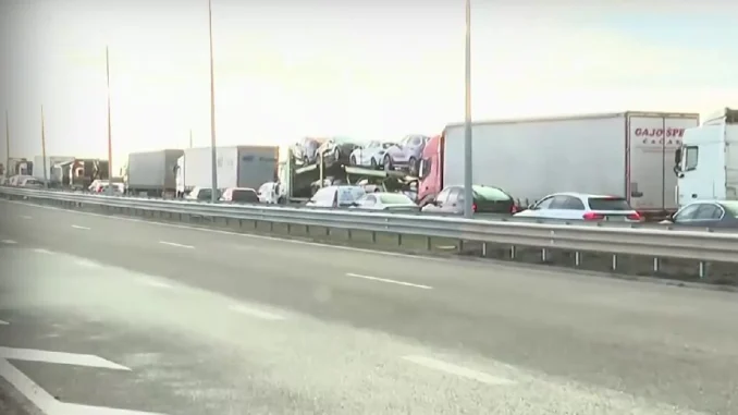 Първата тежка катастрофа станала край Требич към 1:40 ч. Тир със сръбска регистрация, управляван от 45-годишен мъж, блъска пешеходец на 61 години, който вървял по пътното платно. Жертвата загива на място. Тестовете за употреба на наркотици и алкохол, направени на водача, са отрицателни.