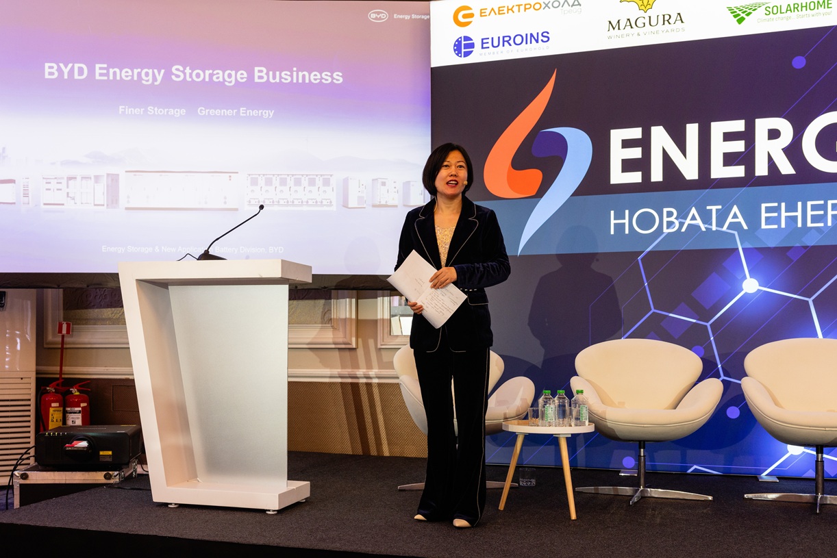 Специално за форума в България пристигна и Карен Ву – регионален директор на продажбите на BYD Energy Storage. Китайската компания е сред най-големите производители на електрически автомобили и батерии за съхранение на енергия в света. Повечето хора познават BYD заради електрическите ѝ превозни средства (EV), но групата развива дейност в четири по-общи бизнес сегмента, един от които са технологиите за съхранение на енергия. По думите на Ву BYD Energy Storage вече има стартирани и договорени проекти с капацитет от над 130 гигаватчаса (GWh), в това число договорени проекти в Европа с капацитет над 22 GWh в страни като България, Великобритания, Полша, Германия и Унгария.