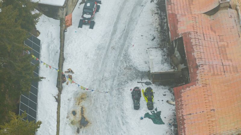 Най-голямото петно без сняг е най-близо до хижата и съответно до пожара. Възможно е това да е причината там снегът да се стопи най-бързо. Но защо на останалите места се е стопил на петна, а непосредствено до тях има сняг – остава загадка.