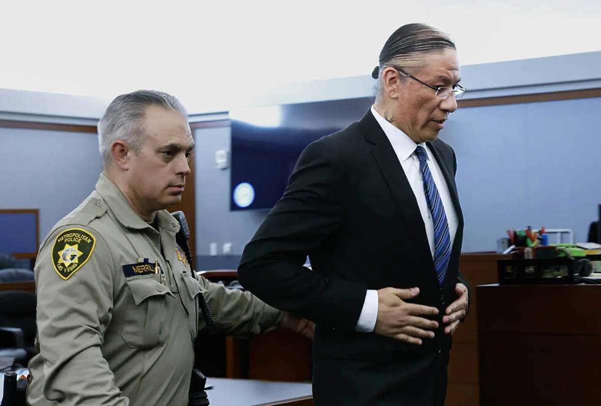 Чейсинг Хорс, облечен в тъмносинята си униформа от центъра за задържане на окръг Кларк, гледаше право напред, докато жертвите четяха показанията си. Той отрече обвиненията срещу него.