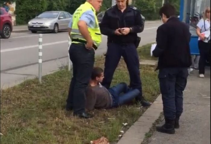 Млад мъж бе наказан с белезници и поваляне по очи на земята на софийска спирка.