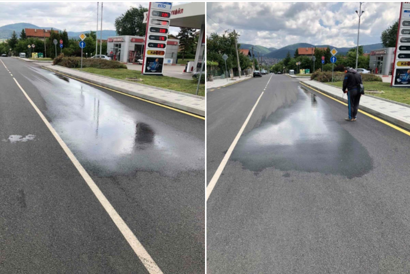 Хората са шокирани, че улицата е новоасфалтирана, а протече.