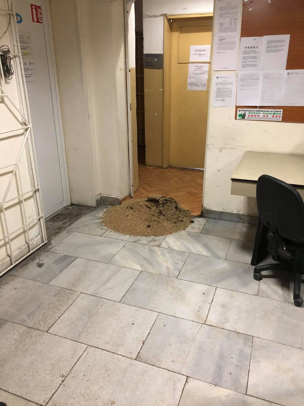 Случката се е разиграла вчера, след 19:30ч. Острата миризма на изсипаната тор е навсякъде, стига и до Регионалния инспекторат и ГРАО, които са в същата сграда, разбра zapernik.com.