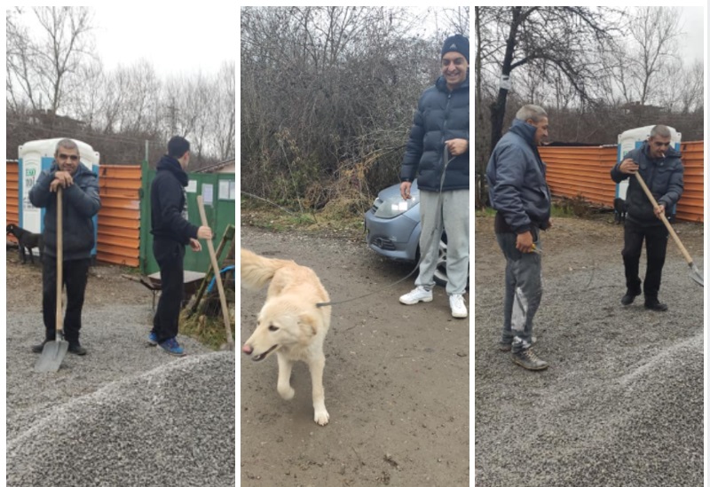 Поредната благодарност отправиха природозащитници към група мъже, които откликнаха на призива им да помогнат за разстилането на купчина чакъл в приюта – за да могат в зимните месеци кучетата да не газят в кал.