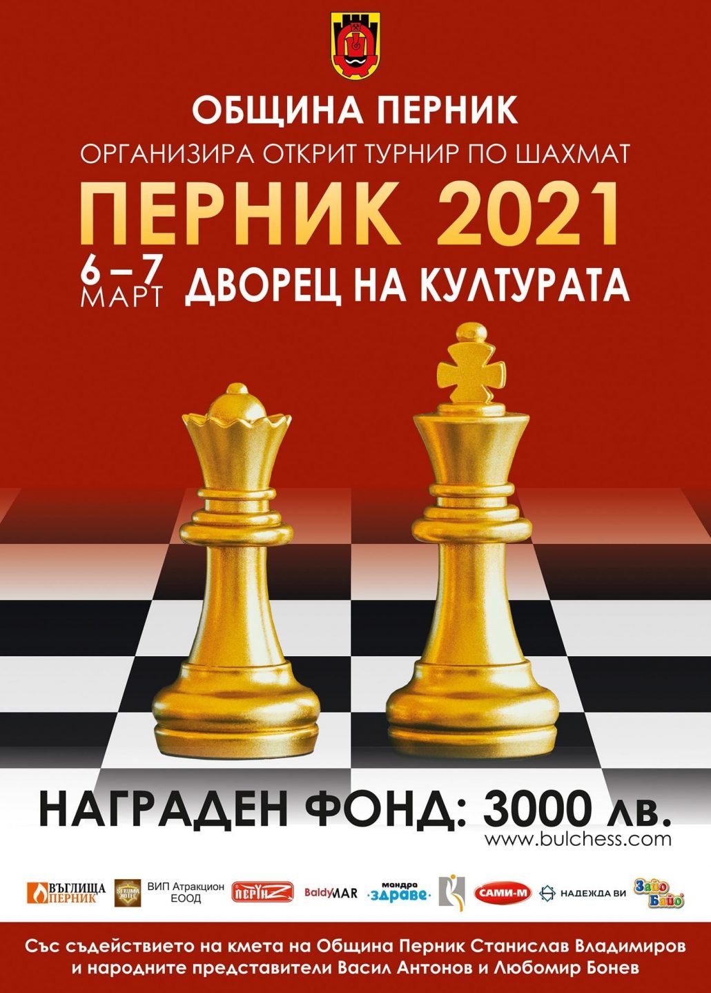 Тази събота и неделя при стриктно спазване на противоепидемичните мерки в Перник ще се проведе международен турнир по ускорен шах. Турнирът се провежда със съдействието на Община Перник и народните представители Васил Антонов и Любомир Бонев. Събитието ще бъде открито в 13:00 ч., когато ще започне и първият кръг.