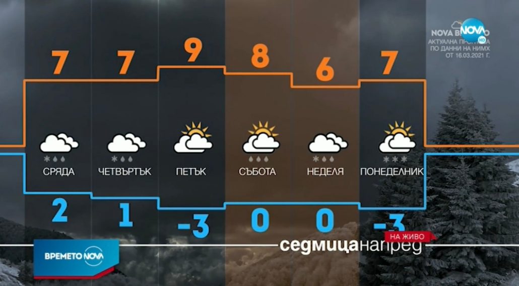 Репортерът прогнозира интензивни снеговалежи да продължат в северозападните райони на страната, а на няколко места ще се натрупа и десетсантиметрова  снежна покривка.