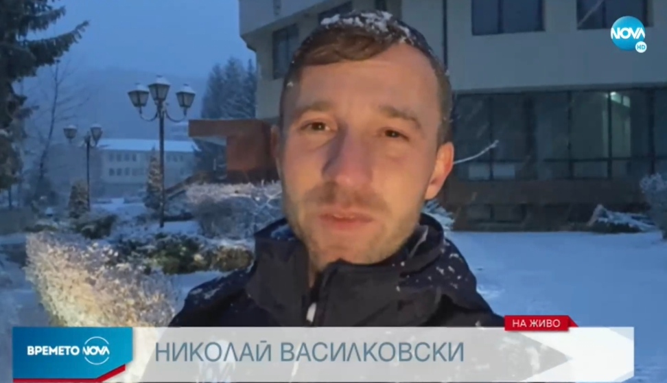 Репортерът на Нова тв Николай Василковски днес предаде прогнозата на времето на живо от град Трън, който е под снежна покривка и се слави като един от най-студените райони в страната.