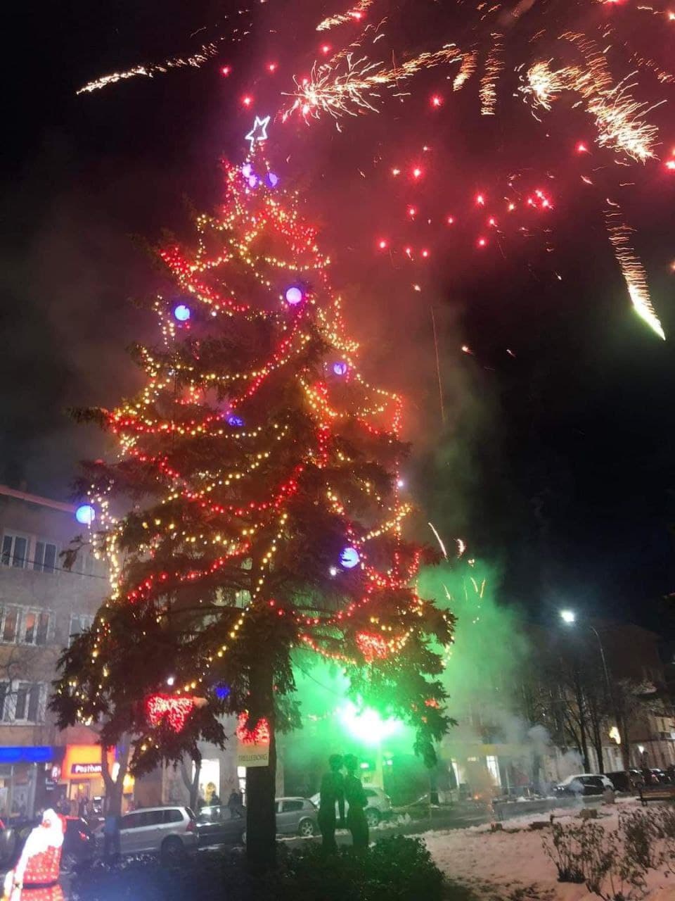 Грейнаха коледните светлинки на елхата на ул. Ленински проспект в пернишкия квартал „Изток“.  Тържественото запалване на светлините беше съпроводено с празнична заря.