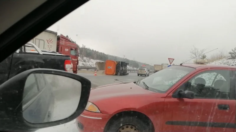 Камион от каменната кариера до разклона за село Боснек се преобърнал тази сутрин и е затворил магистрала „Струма“, съобщава bTV.
