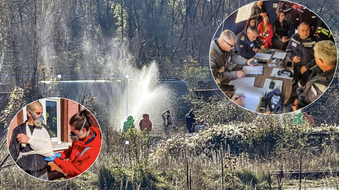 Работата бе разпределена така че доброволците, заедно с БЧК и общинска полиция да оказват помощ в евакуирането на хора от засегнатия район, а екипи от РСПБЗН Перник, Радомир и Брезник работеха по ограничаването на разпространение на газовия облак.