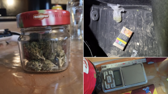 При обиск в жилището на младежа, униформените открили цял буркан с марихуана и блокче амфетамин.
