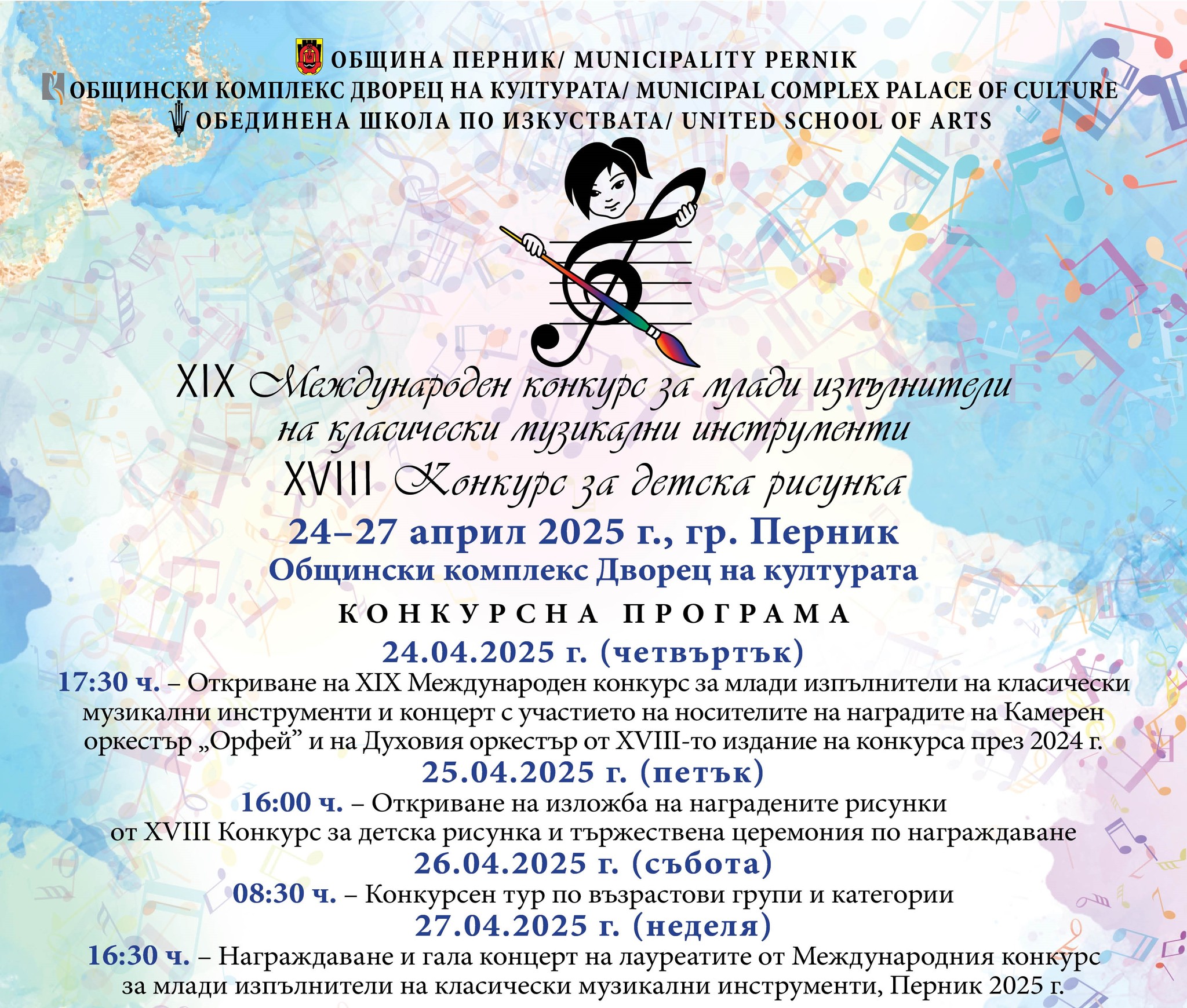 Тази седмица Дворецът на културата се превръща в арена за най-талантливите млади музиканти и художници от цяла България и чужбина! XIX-то издание на Международния конкурс за класически музикални инструменти и конкурса за детска рисунка стартира с размах и рекорден брой участници.