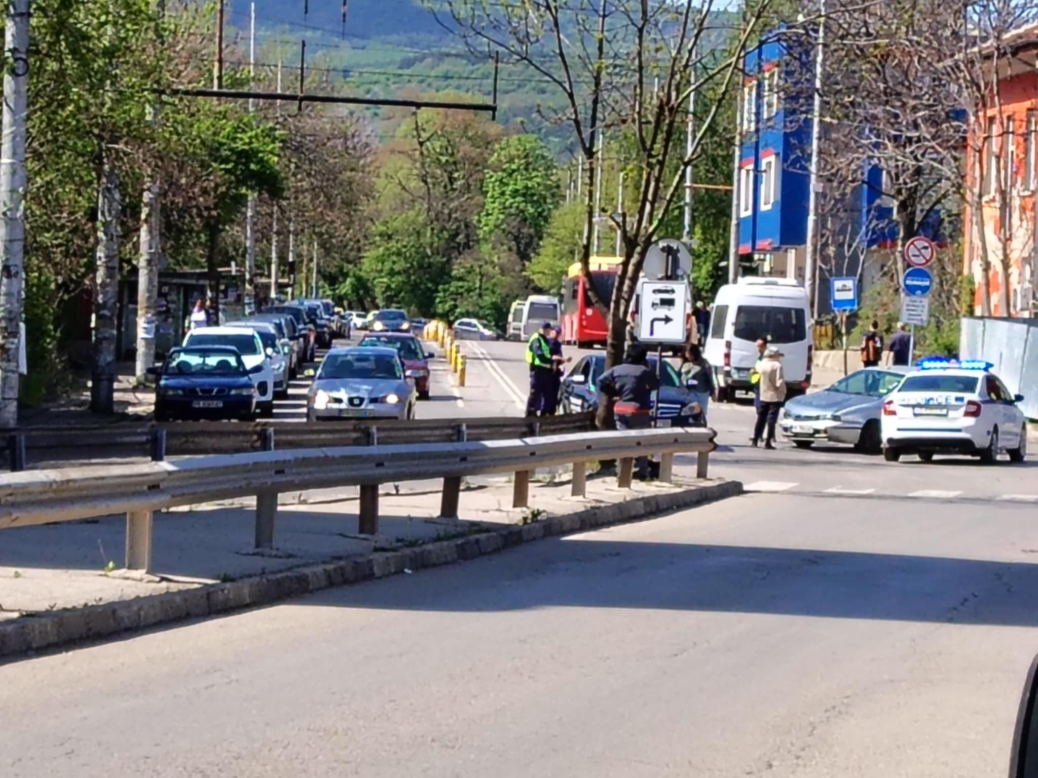 По колите има само материални щети. В момента пътна полиция е на място и регулира движението.