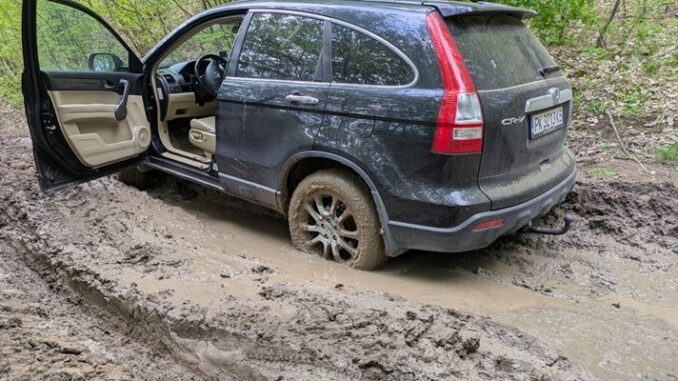 В опит да премине през голяма кална локва, колата й е затънала, казаха от Аварийно-спасителния отряд.