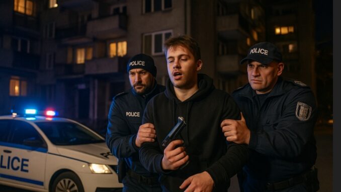 При пристигането си униформените заварили разстроената двойка, а младежът бил във видимо неадекватно състояние – пиян и агресивен. След претърсване от него бил иззет законно притежаван газов пистолет, за който се предполага, че е използван при стрелбата. За щастие няма пострадали, но шокът сред живущите в блока бил пълен.