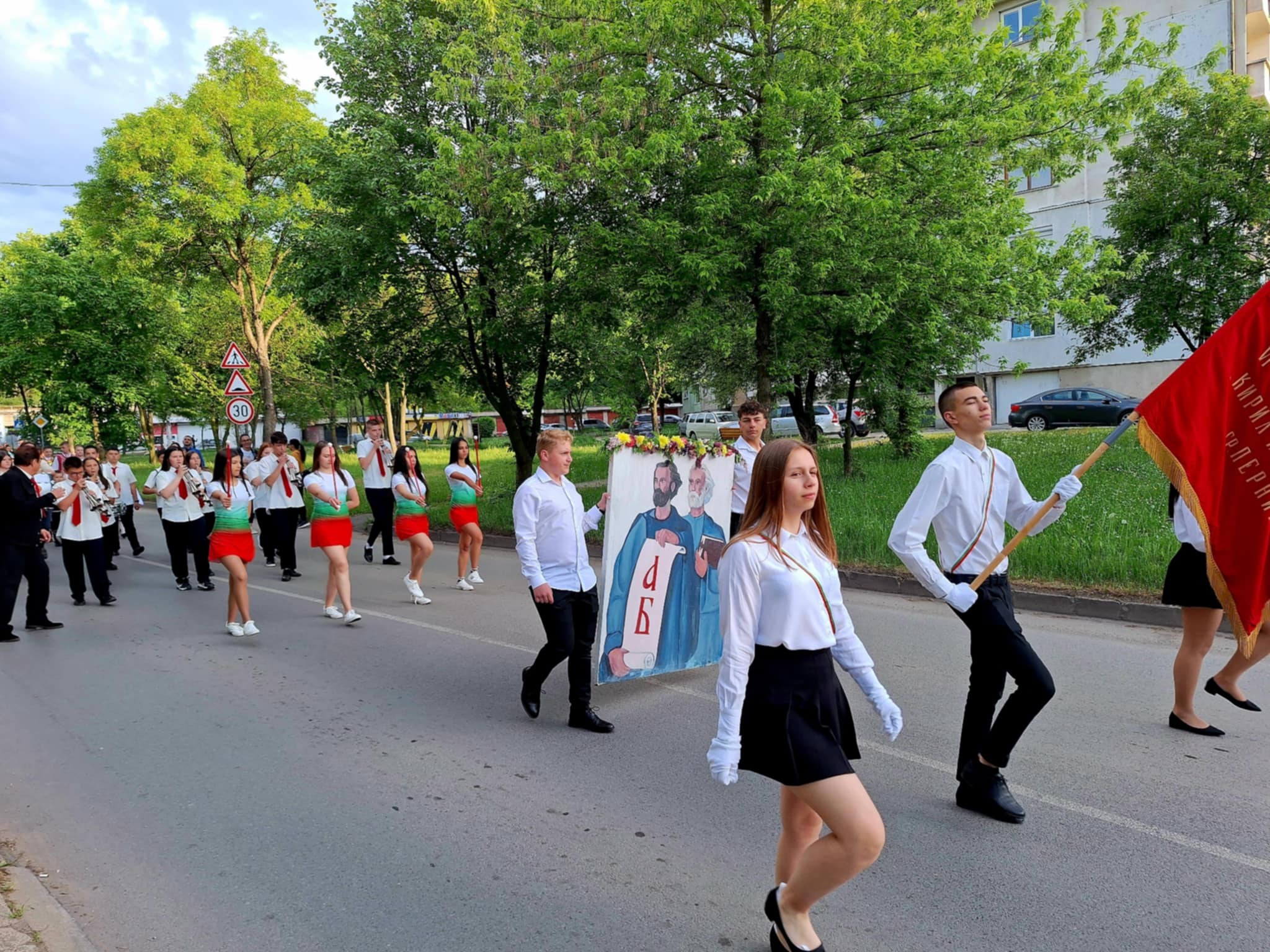 VI Средно училище „Св. Св. Кирил и Методий“ в Перник отбеляза своя патронен празник с тържествена проверка и факелно шествие, събирайки ученици, преподаватели, родители и гости в честване на 182-годишната си история.