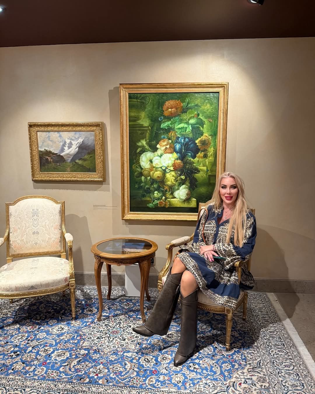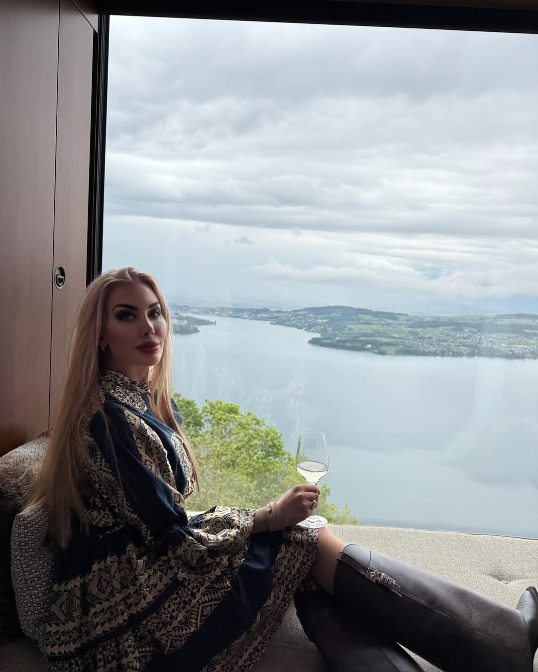 Перничанката Антония Иванова Петрова-Батинкова посреща рождения си ден в стил и класа – сред швейцарските Алпи 🏔️, с чаша вино в ръка 🍷 и изкуство зад гърба си 🖼️.