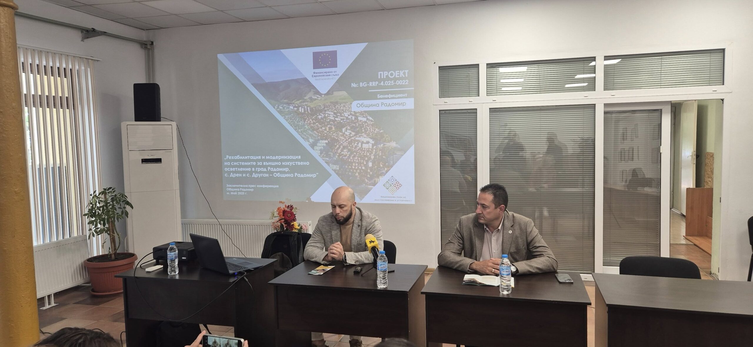Успешното изпълнение на проект „Рехабилитация и модернизация на системите за външно изкуствено осветление в град Радомир, с. Дрен и с. Друган – Община Радомир“ беше отчетено на заключителна пресконференция в Младежки културно-информационен център „Европа“.