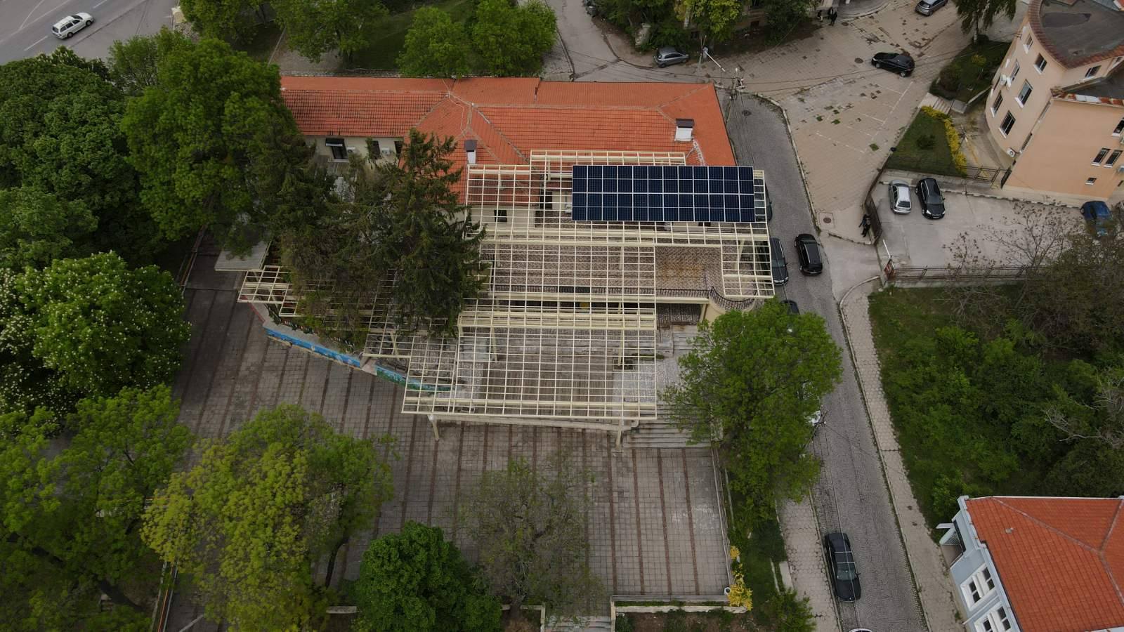 културно- информационен център „Европа“ в Радомир са монтирани 24 броя фотоволтаични панели.