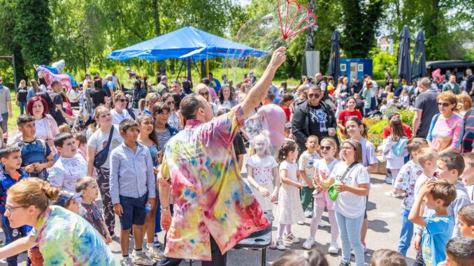 С много усмивки, музика и магия стотици деца и техните родители отпразнуваха 1 юни – Международния ден на детето – в Градския парк на Радомир. Празникът, организиран от Община Радомир, се превърна в истинско вълшебно приключение, изпълнено с игри, танци, научни демонстрации и приказни герои.