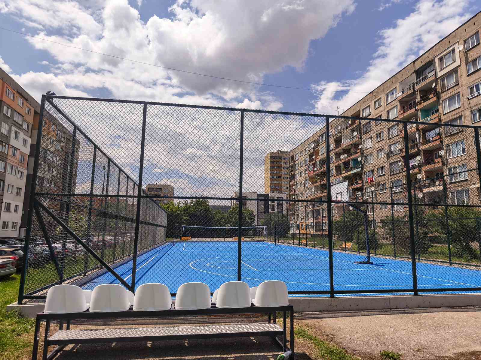 Игрището е с ново настилково покритие, спортни съоръжения и обезопасени зони, подходящи както за младежи, така и за всички любители на спорта. Съседната площадка за разходка на кучета е обособена с ограда, поставени са пейки, кошчета за отпадъци и специални съоръжения за игра на четириногите приятели.