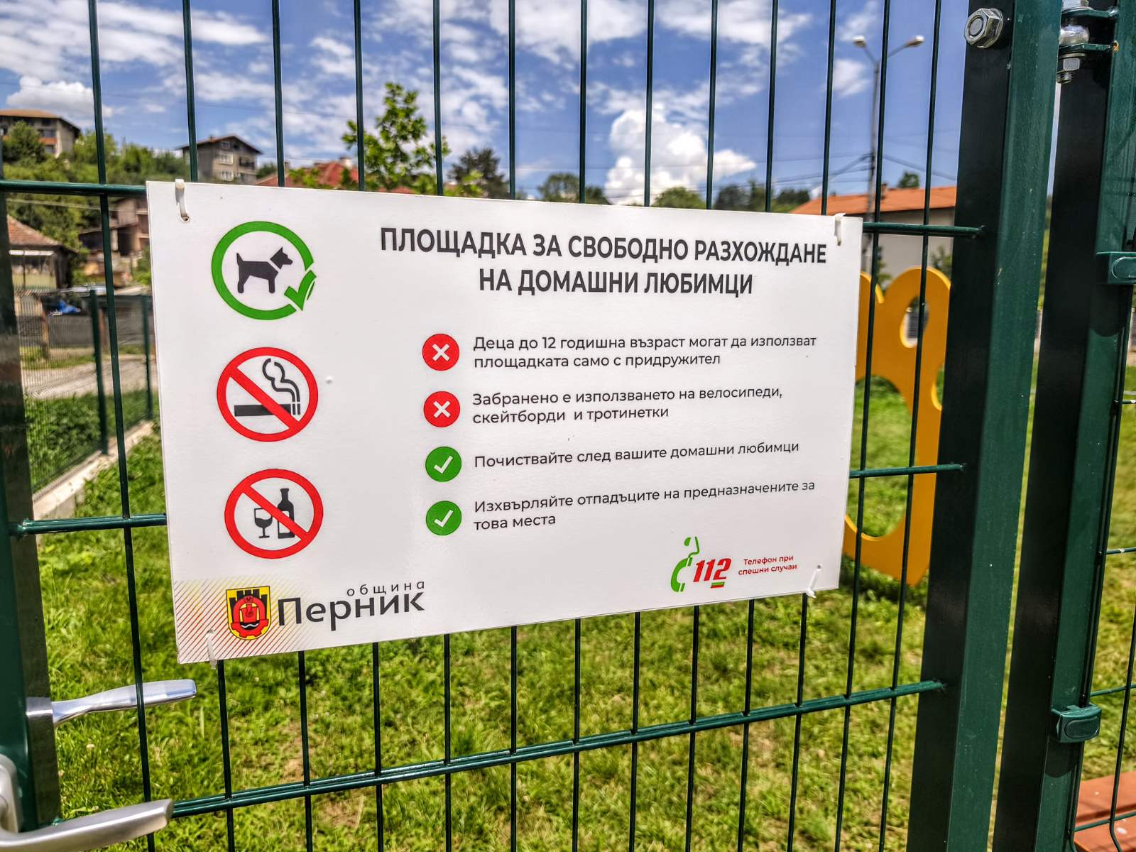 Припомняме, че през изминалата година в Перник бяха изградени първите две площадки за свободно разхождане на домашни любимци – на ул. „Струма“ и ул. „Лом“. Те също са оборудвани с пейки, кошчета за смет и уреди за игра на кучетата. Призоваваме стопаните да спазват правилата, описани на информационните табели на площадките, за да бъде осигурена безопасна и приятна среда за всички – апелират от администрацията на града.