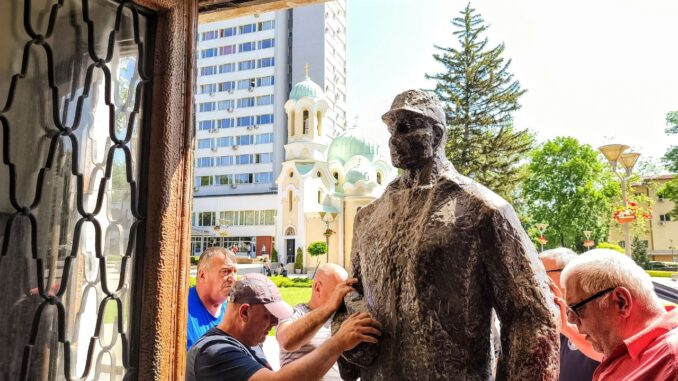 Скулптура на миньор с височина над два метра и половина беше поставена в Минната дирекция на Перник, до главния вход. Фигурата е изработена от гипс и дълго време е стояла при входа на рудник „Александър Миленов“, а след това е била прибрана в склад.