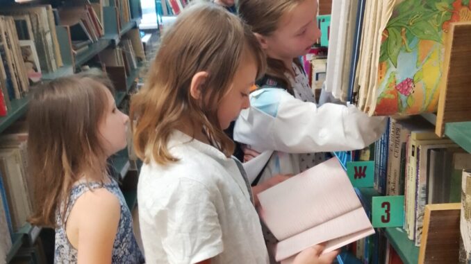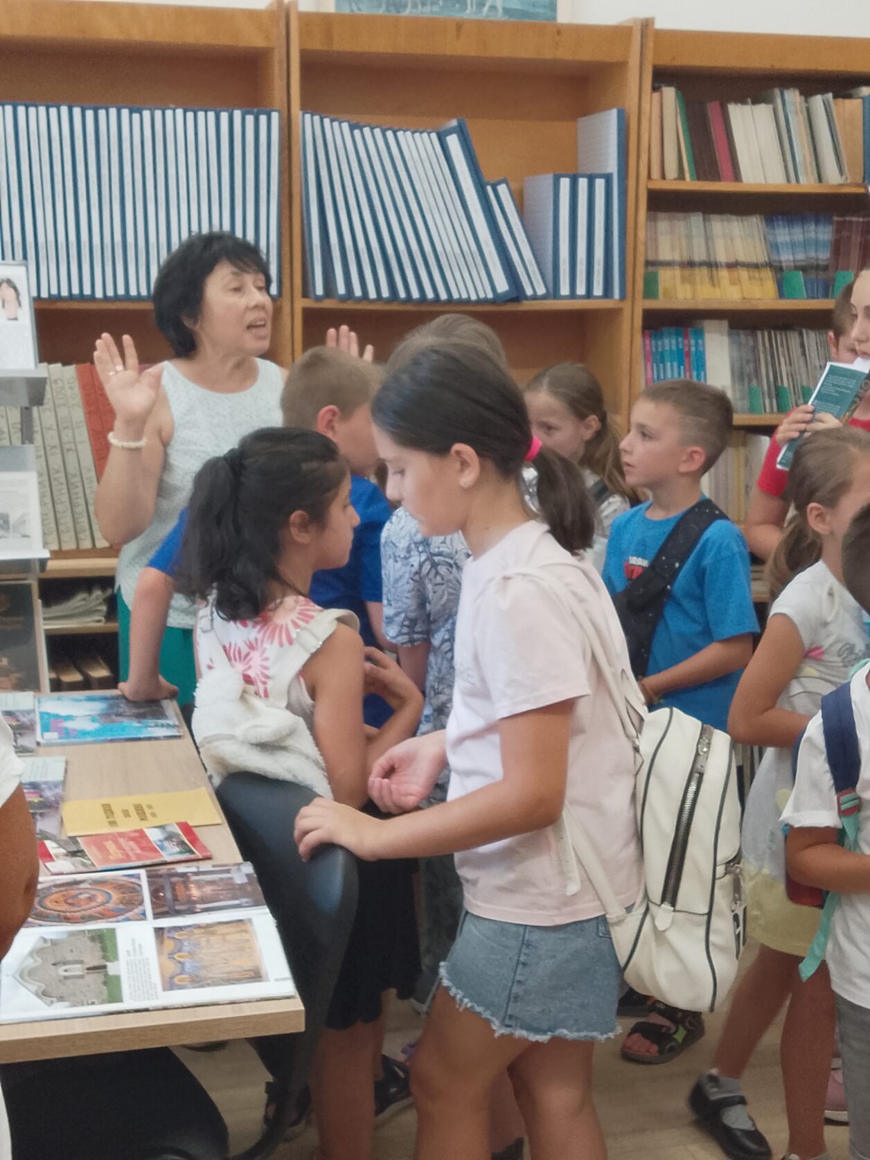 Децата от Летния отдих към ОДК посетиха днес Регионалната библиотека, за да се запознаят с професията на библиотекаря. Посещението започна с обиколка на различните отдели на библиотеката.