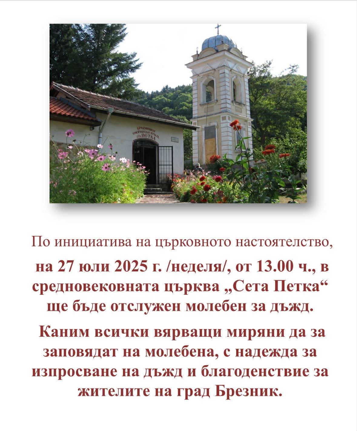 Докарани до отчаяние поради водната криза, в Брезник се молят за дъжд – буквално.