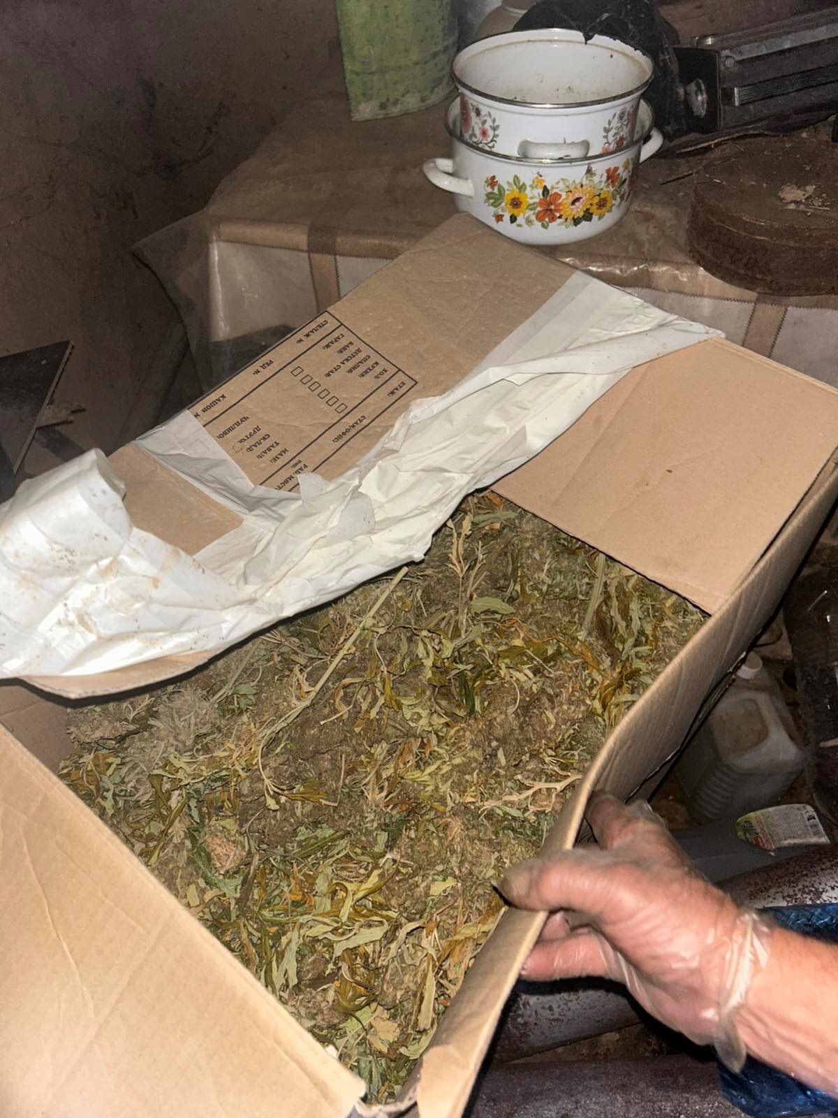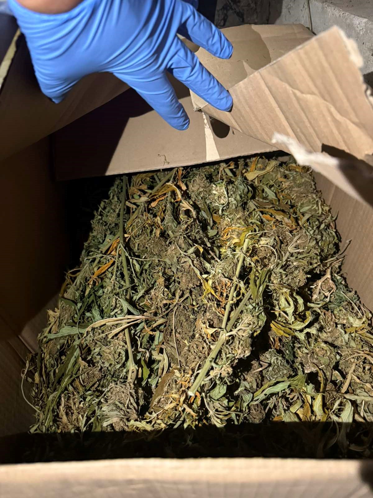 Последвали процесуално – следствени действия в имот на мъжа в трънско село, където криминалистите намерили още два полиетиленови чувала с тегло 1.700 кг и 1.116 кг, както и кашон с 3.522 кг, съдържащи зелена тревиста маса, видимо канабис. Общото иззето количество от наркокултурата е 8.426 грама, назначени са експертизи.