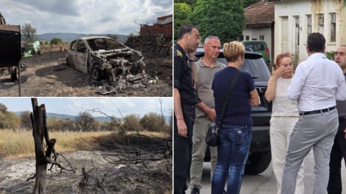 Министърът на външните работи Георг Георгиев, областният управител на Перник Людмил Веселинов и народния представител за пернишки регион от ГЕРБ Христина Георгиева бяха на мястото на опожарените трънски села днес.