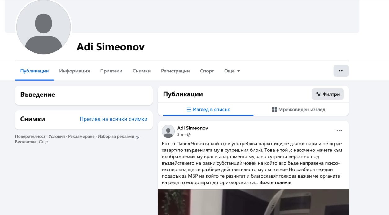Че самият прокурорски син пише под псевдонима Adi Simeonov става ясно от последните му думи в публикациите във Фейсбук, в които признава за видеото от юни, на което се появи с лицето си: „За тези от вас които се интересуват защо МВР не са си свършили работата както трябва в проследяването на видеоклипа ми който качих, той беше качен чрез високо качествен VPN. Както и този. Локацията автоматично се пренасочва към друга точка на света Лек ден“.