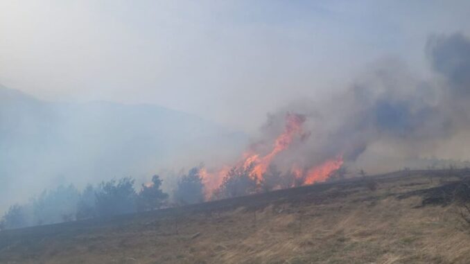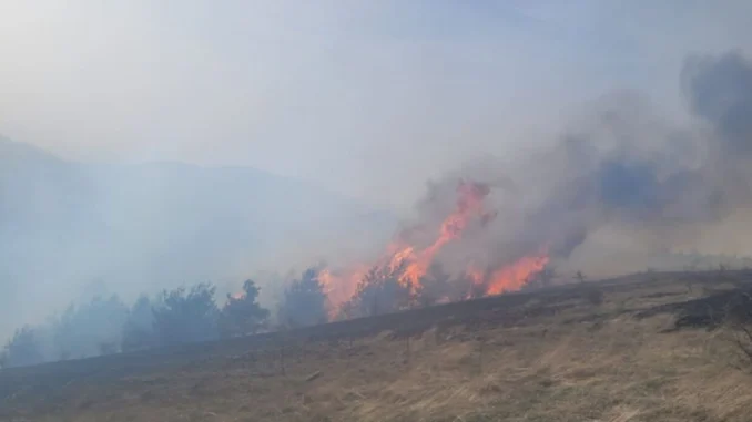 Към момента огънят е почти угасен, няма опасност за жители на населените места.