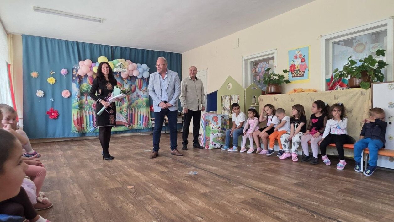 Празничната обиколка продължи и в ДГ „Детелина“, където кметът поднесе учебни материали и играчки за най-малките. Атмосферата в града бе празнична – детски програми, песни и танци вдигнаха духа на всички.