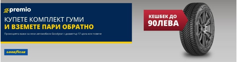 При покупка на комплект гуми Goodyear от нашия сервиз – получавате до 90 лв. обратно.