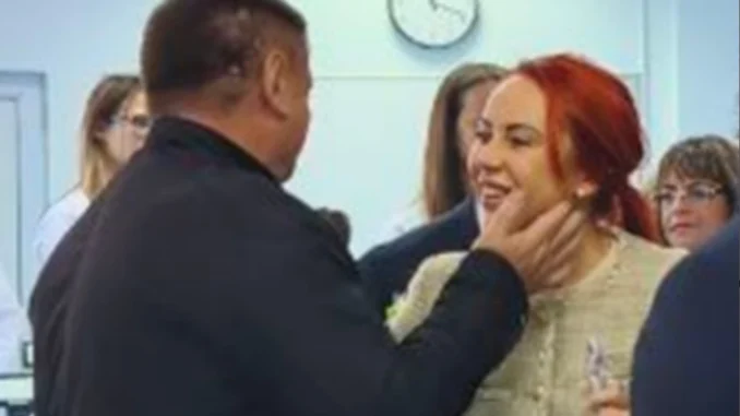 Бившият областен координатор на ГЕРБ, а сега общински съветник Иво Петров гали нежно по лицето народната представителка от ГЕРБ Христина Георгиева. С две ръце. Тя много се радва на милувките и подава бузки. Ръката пода по вратлето …засега.